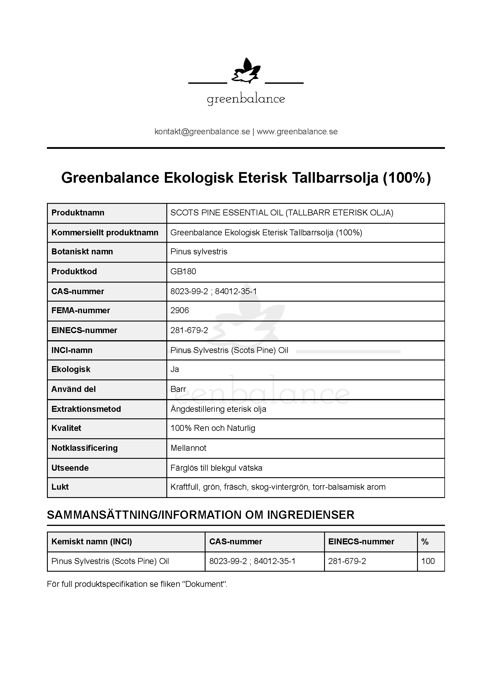 | INCI-Namn | Pinus Sylvestris (Scots Pine) Oil |