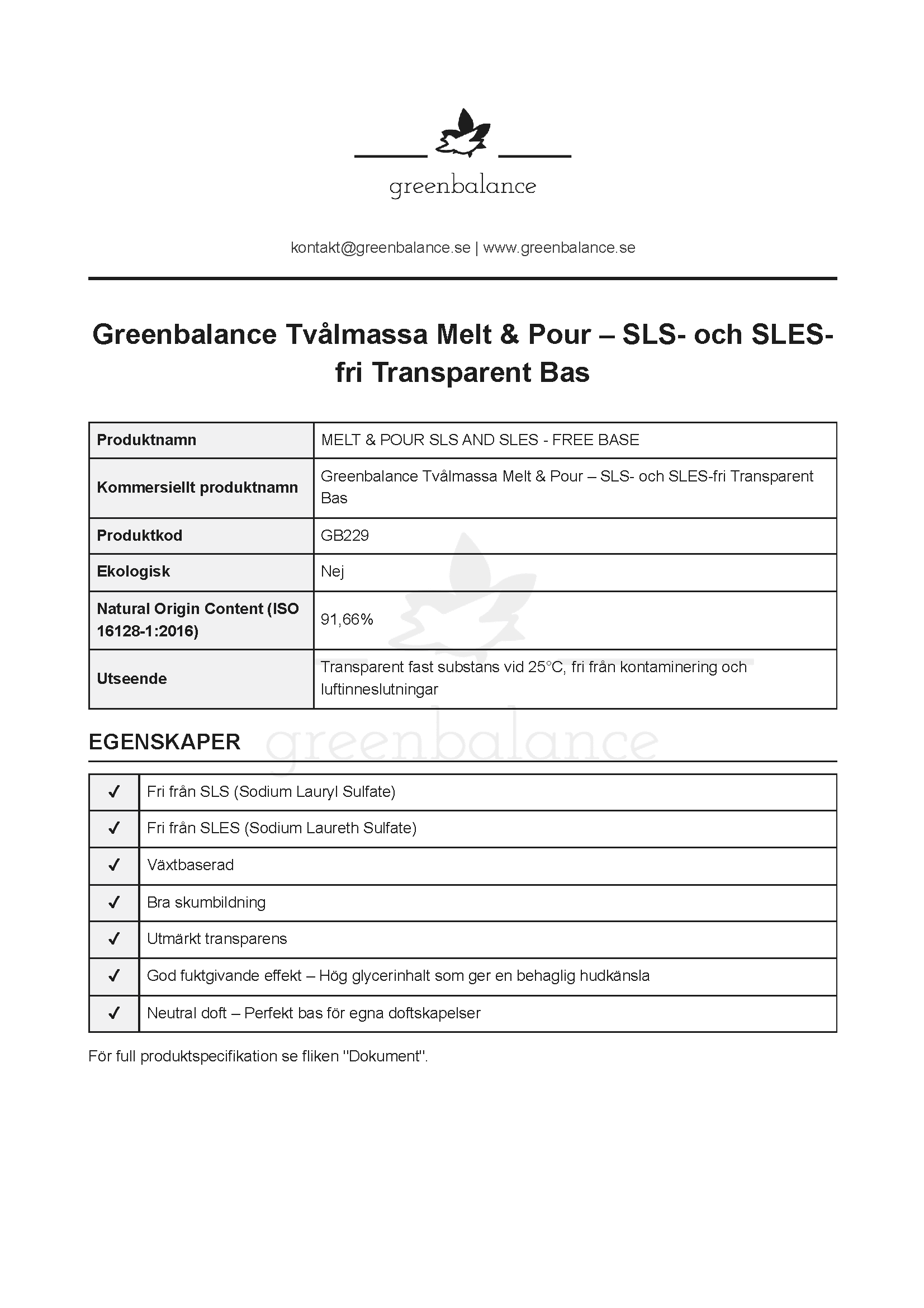 | Certifiering | Natural Origin Content (ISO 16128-1:2016) – 91.66% |